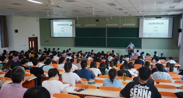 练继建以“自主创新与复兴之路”为题,从重温领导人对创新的论述、苦难中国与救亡图强复兴、电力行业的跟跑并跑领跑、创造我们点点滴滴的奇迹四个方面,结合自己的专业和科研经历,声情并茂地给在场师生上了一堂精彩的思想政治理论课。他鼓励同学们一定要走自主创新之路,提高创新能力,战斗在最前线,坚持十年磨一剑,为国家做出真正的贡献。