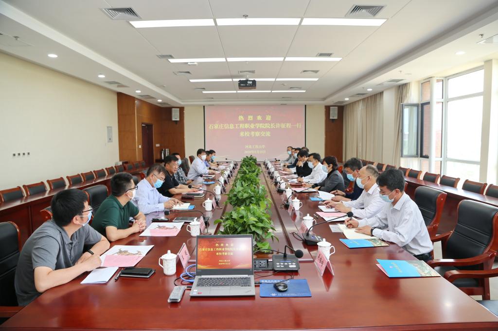5月15日上午,石家庄信息工程职业学院院长许征程带队就党的建设、思政工作、学科建设、后勤管理、新校区迁建等工作来校考察交流。校党委书记哈明虎会见,校领导董志霄、贾东水、张金江出席活动。