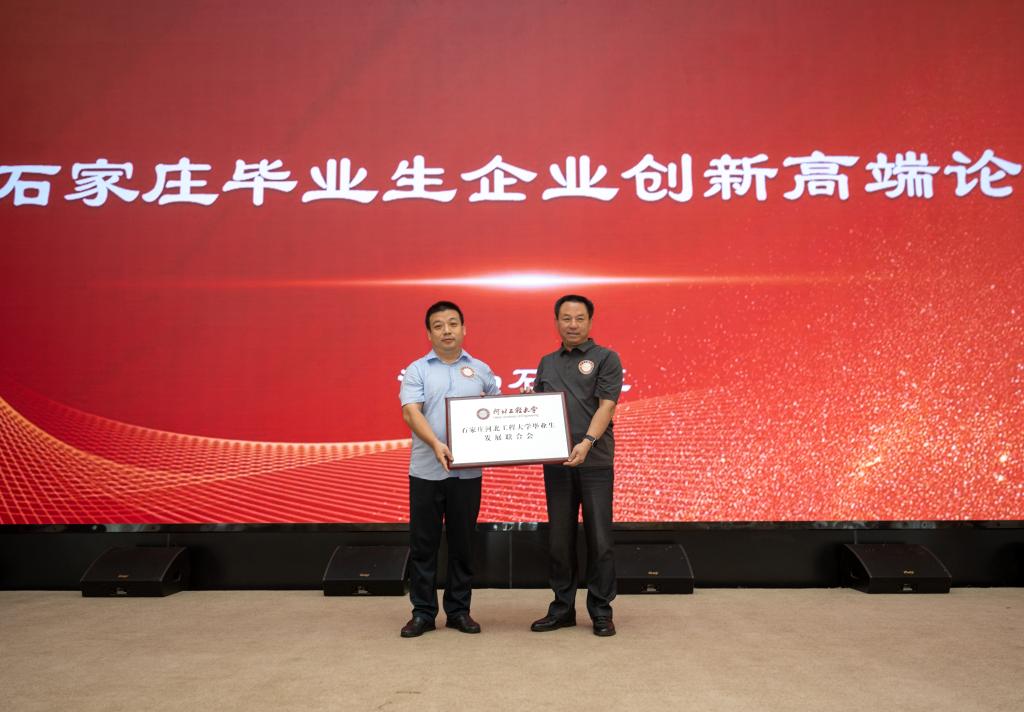 图为贾东水为石家庄河北工程大学毕业生发展联合会授牌