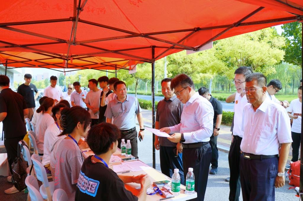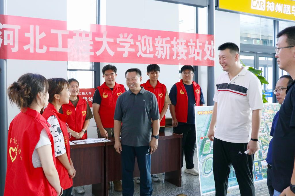 8月24日上午,学校党委书记于树江带队到社区迎新点、学生公寓、学生餐厅和邯郸东站等场地,检查新学期迎新工作,慰问迎新工作人员并看望新生。学校领导张金江、贾东水陪同。