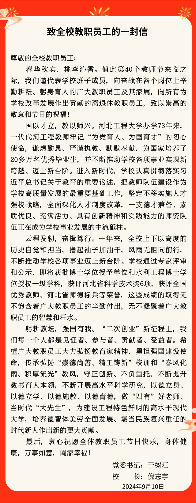 致全校教职员工的一封信