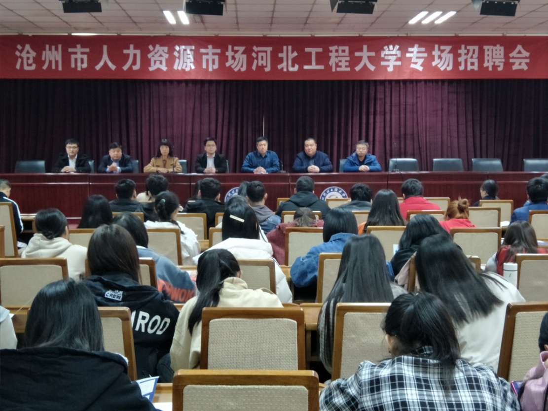 3月12日下午,沧州市人力资源市场主任崔满城带领沧州市中国化学工程第十三建设有限公司、大元建业集团股份有限公司、沧州大化集团有限责任公司、河北天昕建设集团有限公司、河北天成药业股份有限公司等10家重点企业来校举办专场招聘会。300余名毕业生参会,达成就业意向150余个,现场40余名毕业生与企业签订就业协议。
