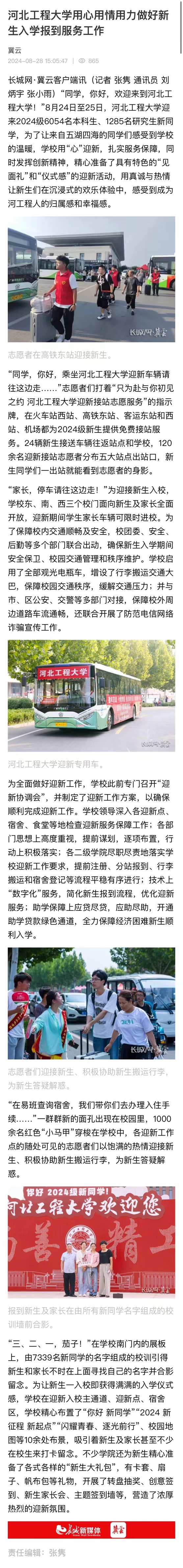 长城网·冀云客户端以《河北工程大学用心用情用力做好新生入学报到服务工作》为题,报道华体网页版登录界面迎新服务工作。