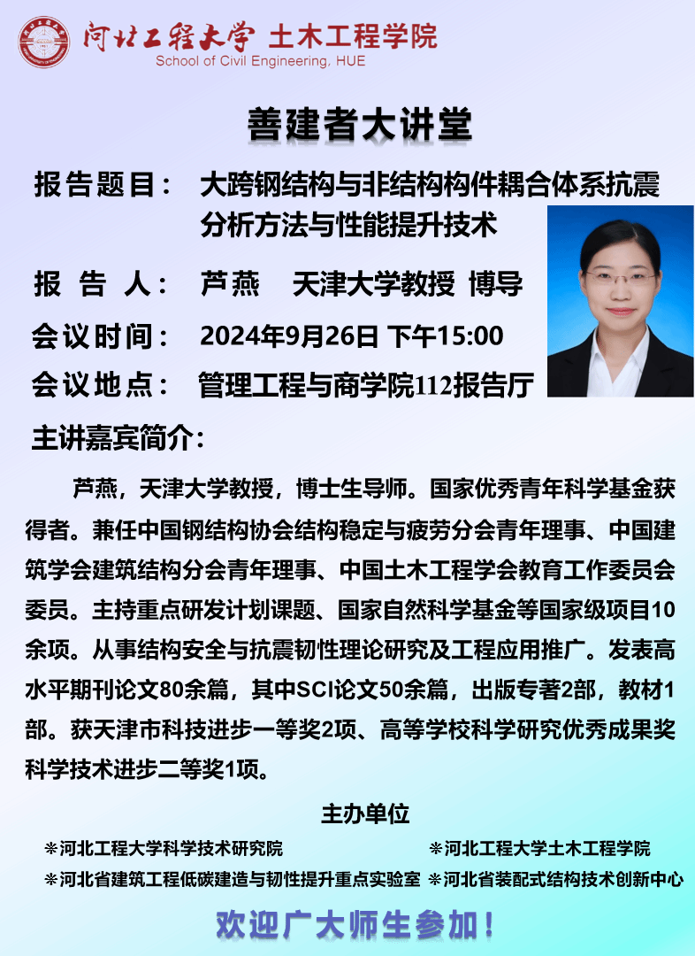 土木学院-大跨钢结构与非结构构件耦合体系抗震分析方法与性能提升技术