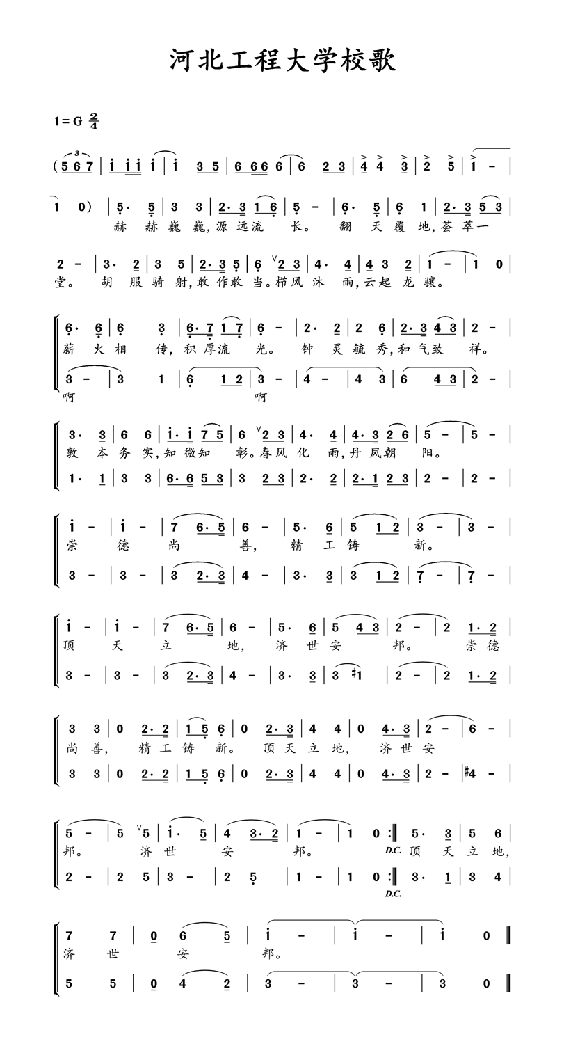 校歌歌词释义 校歌歌词由22个成语组成,包括18个成语,包含构成校训“崇德尚善、精工铸新”的4个成语(崇德报功、上善若水、精益求精、铸新淘旧)。歌词分三节,分别叙写了学校之过去、现在与未来。释义如下: 河北工程大学坐落于国家历史文化名城、中国成语典故之都、中国历史上唯一三千多年没有更名的城市邯郸,依偎着赫赫巍巍的太行山。2019年9月从蜿蜒秀美的滏阳河畔迁至源远流长漳河边的新校园。新校园规划占地4098亩,并配套建有691亩教职工居住小区和附属中小学、幼儿园,办学条件和师生员工工作、学习、生活环境得到翻天覆地的变化。学校秉持“工程学府、文化校园”规划设计理念,历经四个寒暑,昼夜鏖战,整体垫土约800万立方米,在平均低于老城区1.7米的洼地上建成大美校园,实现了四个校区、十个校园分散办学到统一地点集中办学的壮举(荟萃一堂)。新校园投用之前,学校扎根燕赵大地,服务行业发展,矢志工程教育,创新工程文化,七十载弦歌不断。特别是“十二五”以来,根据办学实际,学校以外延式发展为重点,勇于改革(胡服骑射),敢作敢当。栉风沐雨,攻坚克难,取得新增河北省重点骨干大学、招收培养博士生和博士后、引进长江学者特聘教授和国家杰青基金获得者等三百余项零的突破或历史性突破,形成了持续跨越发展的强劲态势(云起龙骧)。 新校园的投用,在延续外延式规模化发展的基础上,吹响内涵式高质量发展的冲锋号。师生员工接续奋斗,薪火相传,人才培养、科学研究、社会服务、文化传承创新、国际交流合作取得越来越丰厚的业绩,流传越来越宝贵的精神和物质财富(积厚流光)。新校园天人合一,山色湖光,感召了越来越多的海内外专家学者和学子来校建功立业、求学深造(钟灵毓秀),学校和睦融洽,平安吉祥(和气致祥)。学校大力传承和弘扬敦本务实、知微知彰的风尚,师生员工深受良好的熏陶和教育(春风化雨),在建设大师群集、大楼林立、大树满园、大气非凡、大有作为、大爱无疆的工程特色鲜明的高水平现代大学征程中乘势而上,大展宏图(丹凤朝阳)。 学校秉持“崇德尚善,精工铸新”校训精神,坚决落实立德树人根本任务,精准聚焦工程创新前沿,精心服务地方行业发展,着力培养德智体美劳全面发展的社会主义建设者和接班人(顶天立地),在实现国家富强、民族振兴、人民幸福的中国梦伟大征程中作出重要贡献(济世安邦)! |